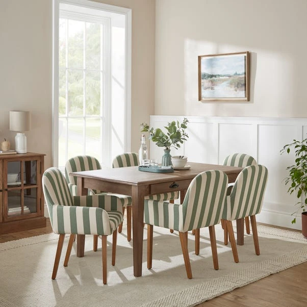 This chair’s stylish stripe pattern introduces visual interest and a contemporary flair to your decor. This chair not only stands out for its unique design but also for its comfort and durability, making it ideal for both everyday dining and special occasions. Its elegant structure, coupled with the bold stripe fabric, makes it a statement piece that can transform your dining space.
