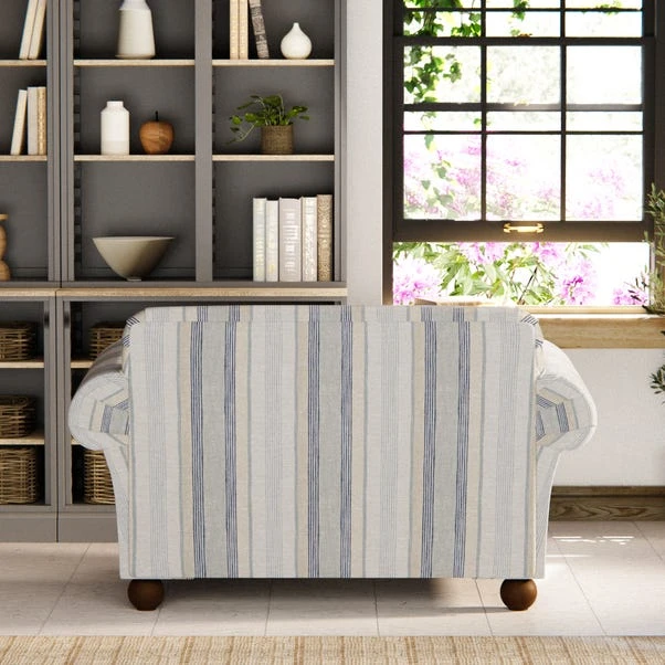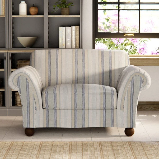 Whether you’re seeking a comfortable nook for solitary relaxation or a cosy spot to share with a loved one, this snuggle chair, dressed in this Linen Blend Striped Fabric, beckons you to indulge in a world of comfort and style.
