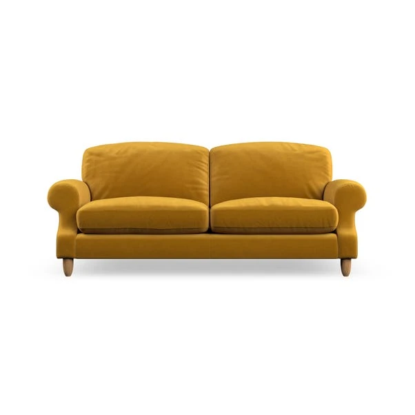 This sofa features a cut back scroll arm and elegant, gently arched back cushions, providing both style and comfort. The top-stitched detail on the arm front adds a touch of sophistication. Higher back cushions with generous fibre filling offer excellent support for your back and shoulders. Customise your comfort by choosing between a low-maintenance foam seat or the inviting ‘Qualofill Blue’ fibre seat, made from 100% recycled polyester. Built for longevity, it includes serpentine seat springs for added comfort. The turned hardwood legs, available in two finishes, are easy to fit.