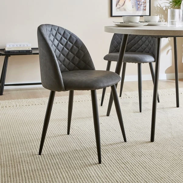 Elevate your dining experience with this stunning chair. Combining modern design, quilted detailing and foam-filled comfort, this chair embodies luxury and style. The chair features a sleek and sophisticated faux leather upholstery, exuding a timeless appeal that effortlessly complements any interior decor. The tall back offers excellent lumbar support, allowing you to sit comfortably during long meals and engaging conversations. Whether you’re hosting a dinner party or enjoying a quiet family dinner, this chair ensures you can indulge in hours of comfort without compromise. The quilted detailing showcases fine craftsmanship and adds an extra layer of sophistication to the overall design, making it a true centrepiece of your dining ensemble. Its sleek design is perfect for contemporary interiors, adding a touch of sophistication to your dining space.