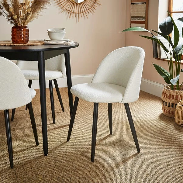 Elevate your dining experience with this stunning chair. Combining modern design, quilted detailing and foam-filled comfort, this chair embodies luxury and style. The chair features a sleek and sophisticated boucle upholstery, exuding a timeless appeal that effortlessly complements any interior decor. The tall back offers excellent lumbar support, allowing you to sit comfortably during long meals and engaging conversations. Whether you’re hosting a dinner party or enjoying a quiet family dinner, this chair ensures you can indulge in hours of comfort without compromise. Its sleek design is perfect for contemporary interiors, adding a touch of sophistication to your dining space.
