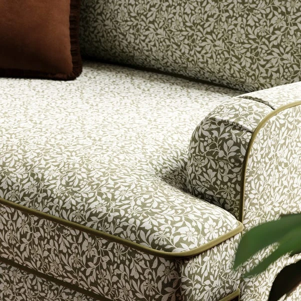 This Beatrice snuggle chair combines comfort and elegance in a generously proportioned design, perfect for curling up and relaxing. Upholstered in a luxurious fabric with a charming leaf pattern, this chair adds a touch of sophistication and character to any living space. Its deep, cushioned seat and soft, supportive backrest make it an inviting spot to unwind, while the sturdy frame ensures long-lasting durability.