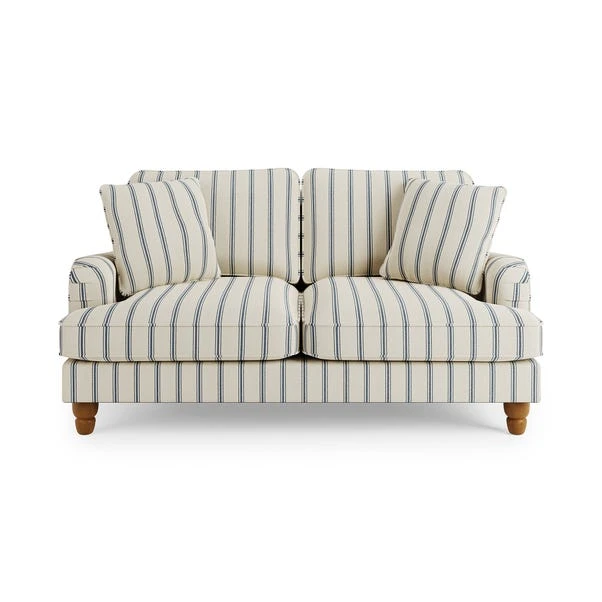 Upholstered in a delightful folkstone stripe pattern, this sofa adds a touch of character to any room. With its compact size and comfortable seating for two, it’s perfect for smaller spaces or as an additional seating option in larger rooms. Sink into its foam and fibre filled plush cushions and relax in style.