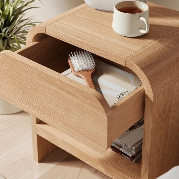 Crafted with a modern touch, this bedside table combines style and practicality effortlessly. Its single drawer offers convenient storage for bedtime essentials while the top surface provides space for a lamp or decorative items.