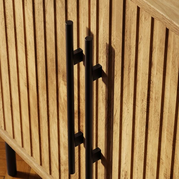 Style, storage, and sophistication – that’s what you’ll get with this gorgeous mango wood effect sideboard. With two doors, one fixed shelf, and sleek black metal handles and legs, it has everything you need to organise your living space.