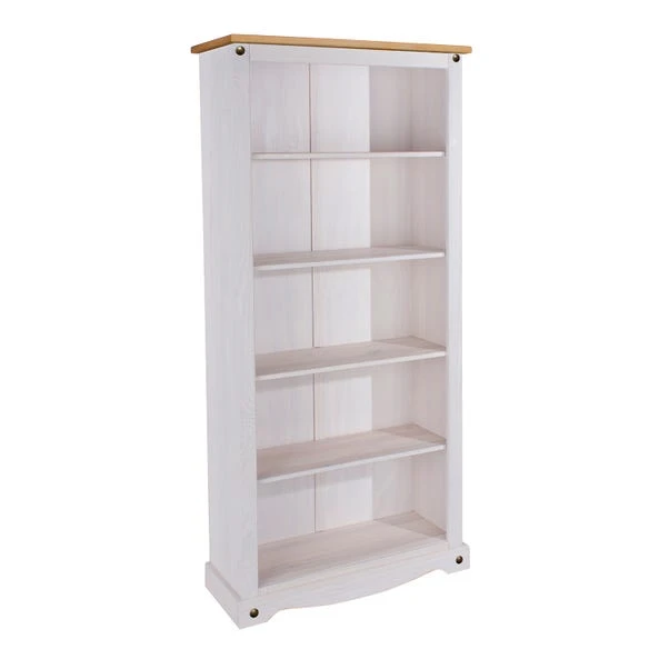 The Corona White Tall Bookcase is made entirely from responsibly sourced South American pine and features quality construction methods. The classic Corona antique wax finish is applied to the tops, contrasting beautifully with the gorgeous white washed wax finish, which, with its subtle colouring, allows the natural grains and textures of the real wood to show through. Item: Bookcase only