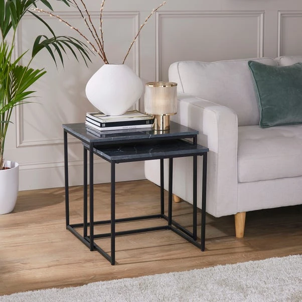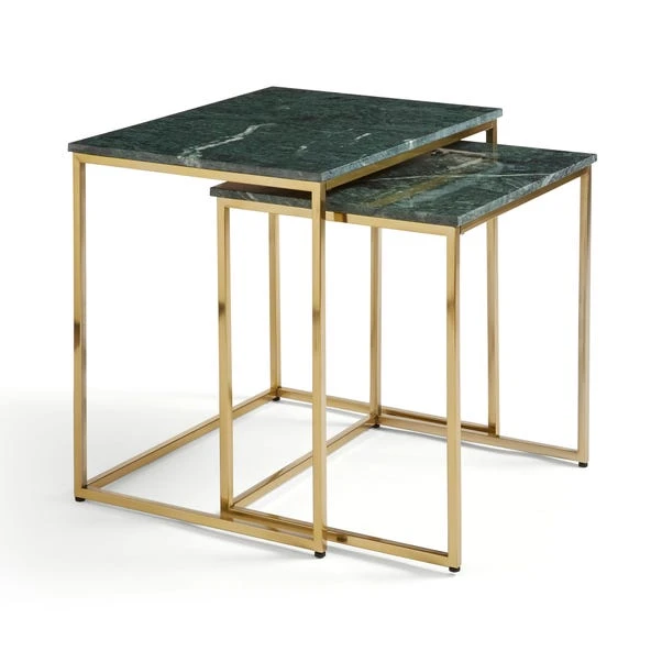 These tables feature luxurious marble tops that add a touch of elegance and sophistication to your decor. The square design offers a modern look, while the sturdy steel legs provide durability and a sleek, contemporary contrast. Perfect for use as side tables or accent pieces, the nesting design allows you to save space when needed.