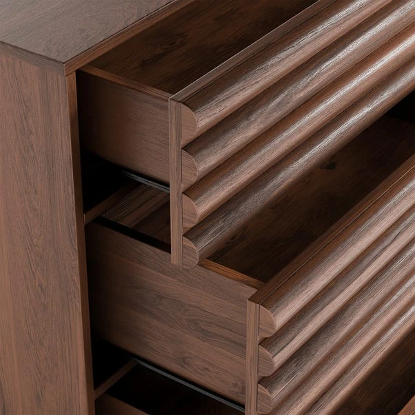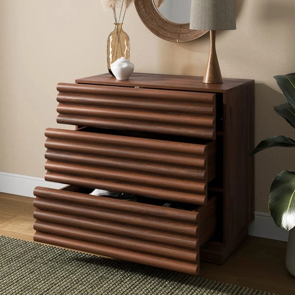 With its sleek silhouette and rich oak finish, this chest oozes modern elegance while providing essential storage space for your bedroom. The three spacious drawers offer ample room to organise clothes and belongings, ensuring a clutter-free environment. Designed for convenience, the Dax Chest features undermount metal runners for smooth and silent drawer operation, adding a touch of luxury to your daily routine.