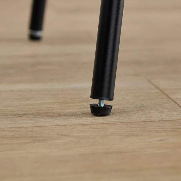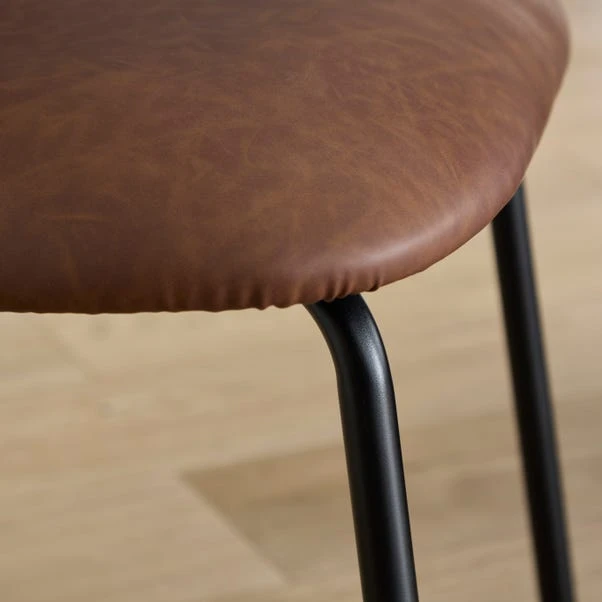 A sleek and versatile addition to any dining space, this chair pairs modern styling with a refined finish. Upholstered in smooth faux leather, it offers a sophisticated look that’s easy to maintain. The gently curved back and padded seat provide a comfortable place to sit, while the sturdy frame ensures lasting durability.