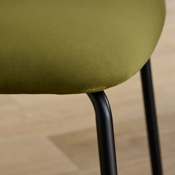 A stylish choice for any dining space, this chair combines a timeless silhouette with the soft, tactile appeal of velvet upholstery. The gently curved backrest and padded seat provide a comfortable sitting experience, while the sturdy frame ensures durability for everyday use.