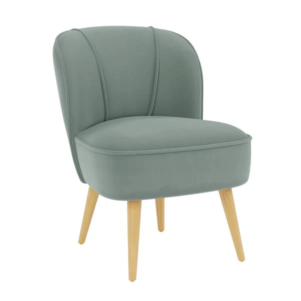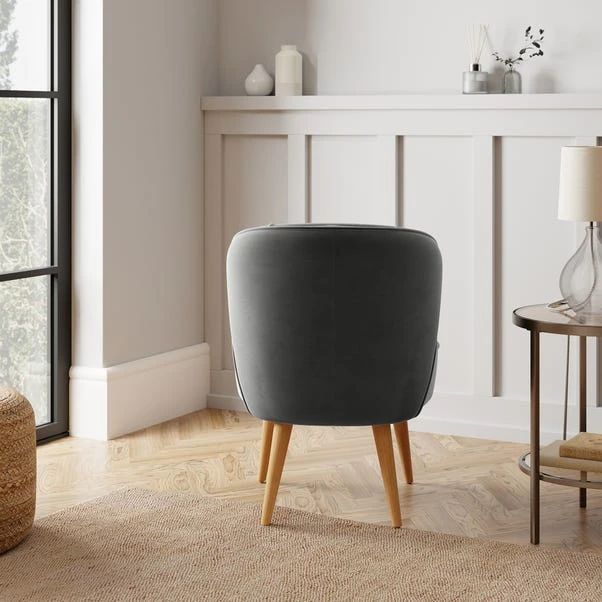 Upholstered in a soft touch velvet fabric in a selection of stylish colourways, the Elsie cocktail chair boasts a compact design, making it perfect for adding a splash of colour to any space. Complete with a soft, foam-filled seat and sturdy solid wood legs, this chair boasts great value and offers easy assembly.