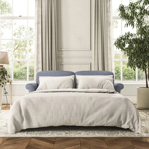 The Evie 2 Seater Sofa Bed combines style with practicality, making it a versatile choice for any home. With its elegant slender scroll arms and neat lugged seat cushions, it offers a refined look, while the hidden sofa bed provides a convenient sleeping solution for guests. The fibre-filled back cushions offer supportive comfort for everyday seating, and the sofa bed mechanism is easy to use when needed. Customise it with your preferred fabric, colour, cushion filling, and leg finish.