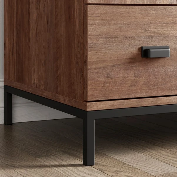 Dress yourself up with this iconic wardrobe, featuring a rustic oak effect finish and black metal handles. With 3 spacious shelves and 2 drawers, you’ll be more organised than ever before. This industrial-inspired design makes it the perfect piece for any contemporary interior.