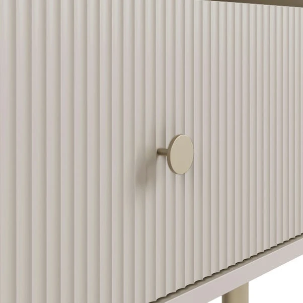 Equally glam and modern, our Georgi 1 Drawer Bedside draws the eye with its striking textured front set against a stylishly simple frame. This bedside is finished with matte gold finish handles and legs for a truly contemporary luxe look.