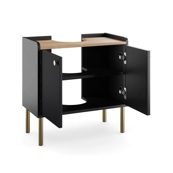 Maximise your bathroom storage with this stylish under-sink unit, designed to make the most of every inch of space. Featuring a sleek, contemporary design, it neatly fits around your basin, providing a smart solution for organising toiletries, cleaning essentials, and everyday bathroom items. The smooth cabinet doors keep clutter out of sight while allowing for easy access when needed.