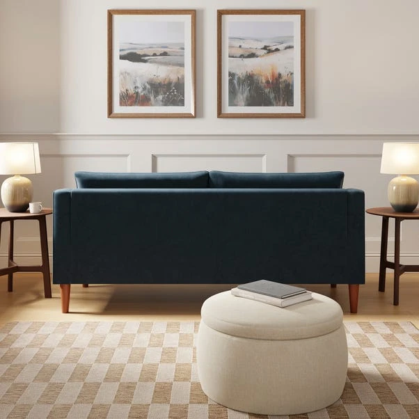 A sleek and sophisticated addition to any living space, this three-seater sofa offers a balance of style and comfort. Upholstered in soft velvet, it provides a luxurious feel, while the structured square arms lend a modern touch. The generously padded seat and back cushions ensure a cosy and supportive sit, making it an inviting spot for relaxation.