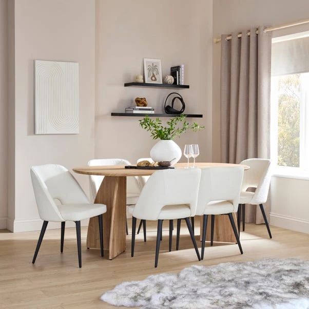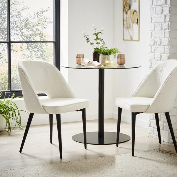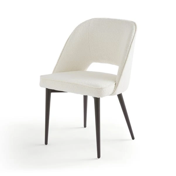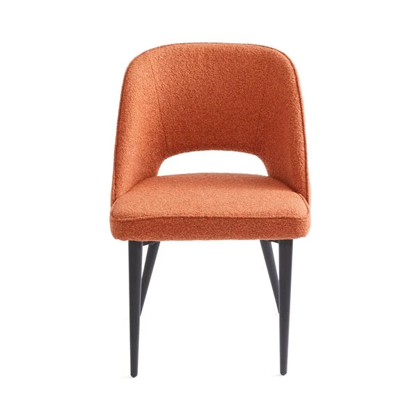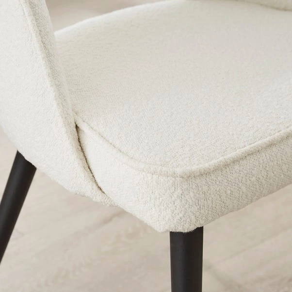 Finished in a rich boucle fabric, the Lillia Boucle Dining Chair features a generously proportioned, foam-filled seat for added comfort. Inspired by modern art deco designs, this stylish chair is crafted with a curved back and black finished metal legs to add a contemporary touch.