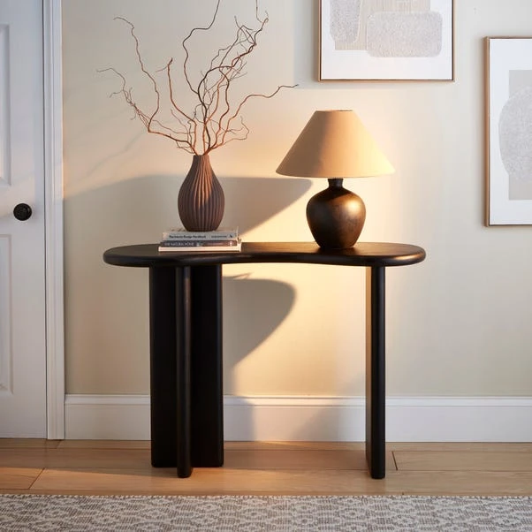 The Ludo Kidney Shaped Console Table is a statement piece with a natural twist. Crafted from rich mango wood, its organic kidney-shaped design brings a sense of fluidity and warmth to any space. The smooth curves and natural grain make each piece unique, while its versatile size makes it perfect for hallways, living rooms, or stylish display areas.