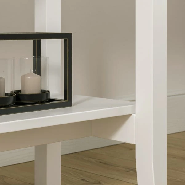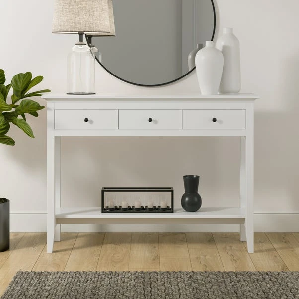 With 3 drawers, a large bottom shelf and table top, this Lynton Console Table is the perfect storage solution for your compact living space or hallway. You will have plenty of space to put away any clutter in your home. Not to mention it looking stylish at the same time!