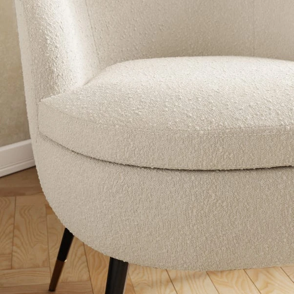 Upholstered in sumptuous boucle fabric, this chair provides a soft, textured surface that invites you to relax. The foam and fibre-filled seat and backrest offer plush support, ensuring maximum comfort for lounging or entertaining. Supported by sleek metal legs, the Marcie Luxe balances modern elegance with durability, making it as sturdy as it is stylish.