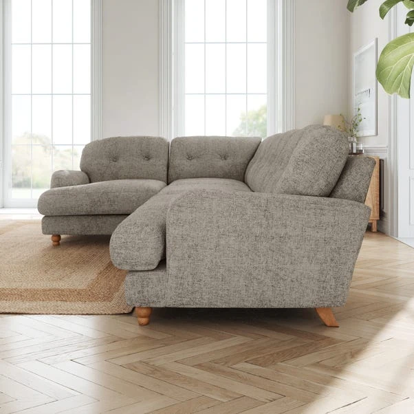 Crafted for those who appreciate both comfort and style, this exquisite piece is upholstered in luxurious chunky chenille fabric that invites you to sink into its plush cushions. With its full corner design, this sofa offers generous seating space, making it perfect for lounging with family and friends or simply stretching out and relaxing on your own. The chunky chenille fabric not only looks inviting but also feels incredibly soft to the touch, providing a sumptuous lounging experience.