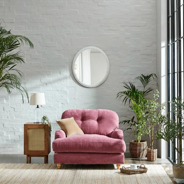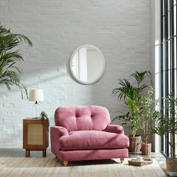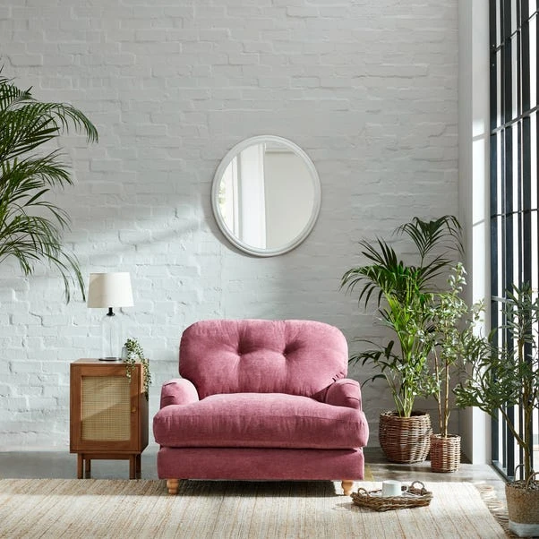 The Martha Chenille snuggle sofa combines the allure of vintage design with the plush comfort of soft chenille fabric. This snuggle sofa invites you to sink into its cosy embrace, with fibre-filled seating ensuring a snug experience. The turned wooden legs add a touch of nostalgia to your decor, making it a perfect choice for a retro-inspired living space.