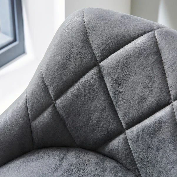Meet Noah, the bar stool that combines versatility, comfort, and style. With its adjustable height feature, you can easily find the perfect position to enjoy your favourite drinks or chat with friends. The quilted detail adds a touch of sophistication, while the plush faux suede upholstery ensures maximum comfort.