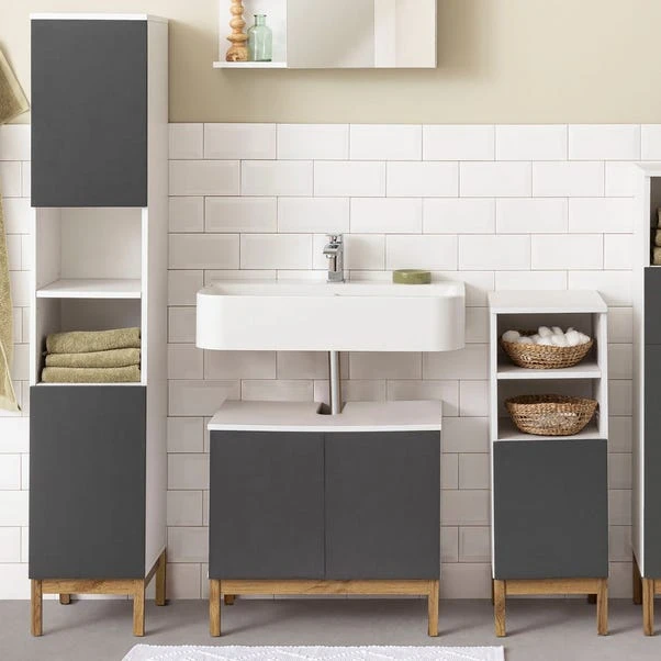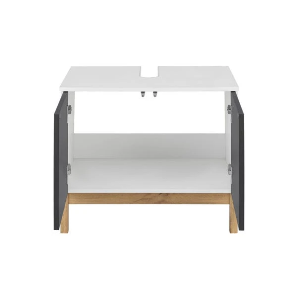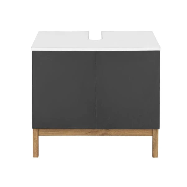 This unit, designed for under-the-sink placement, combines functionality and style seamlessly. Featuring ample storage space with its two doors and a convenient siphon cut-out, it’s tailored for plumbing necessities. Crafted with durable materials, it ensures reliability and sustainability. With its push-to-open doors, sturdy build, and easy-to-clean surfaces, this unit provides practicality and elegance for your bathroom decor.