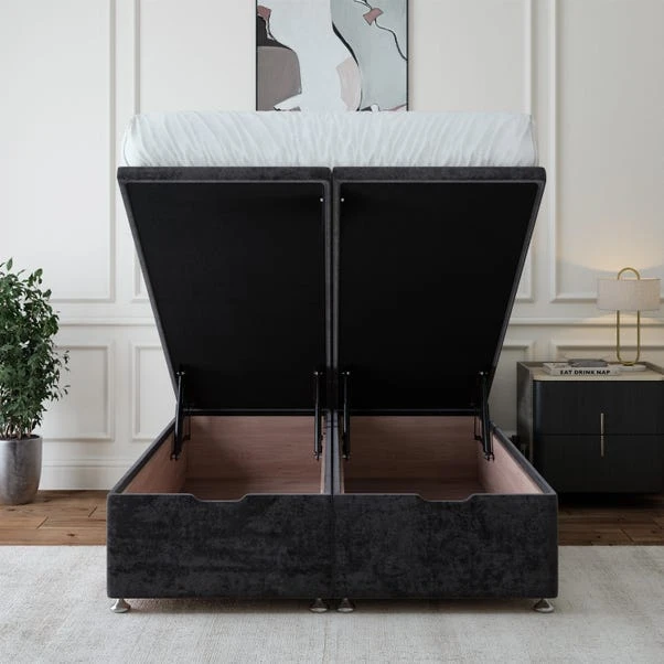 Upholstered in luxurious chenille fabric, this ottoman base offers a refined aesthetic while serving as a functional storage solution. The solid platform top provides durability, and the ottoman design features a generously sized hidden compartment, perfect for keeping bedding, linens, or other items neatly organised.