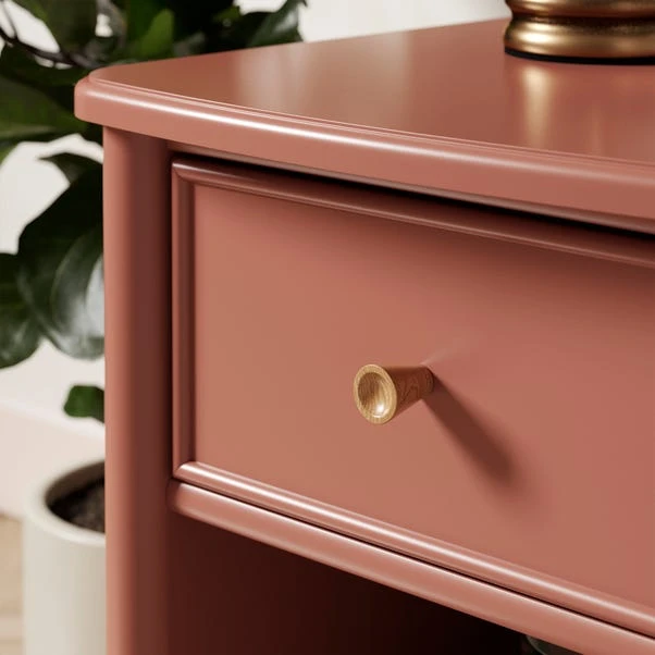 The beautiful painted green bedside table is a true showstopper, adding a fresh and vibrant ambiance to your bedroom. Its captivating hue seamlessly blends with a variety of interior styles, making it a versatile choice for any décor. Featuring a distinctive rounded edge and a scallop apron, this bedside table exudes elegance and sophistication. The turned and tapered legs add a touch of timeless allure and the solid wood handles provide a sturdy grip. Designed to cater to your storage needs, this bedside table boasts a clever configuration. It offers a spacious open shelf, perfect for displaying your favourite books, magazines, or decorative pieces, while a soft-close drawer glides effortlessly, providing a discreet space to tuck away essentials for a clutter-free bedroom. As part of a matching collection of bedroom furniture, this bedside table offers the opportunity to create a cohesive and harmonious space.