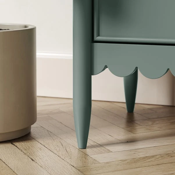 Whether you’re enjoying a movie night with loved ones or simply seeking an organized and stylish entertainment space, this wide TV unit offers a fusion of practicality and style to add to any living area. The scallop detail on the front of the TV unit adds a touch of sophistication and charm, creating a focal point that is sure to capture attention. The turned and tapered legs provide a sturdy foundation, ensuring durability and stability for your television and other media devices. Designed with your storage needs in mind, this TV unit offers ample space to keep your entertainment essentials organized and easily accessible. Two doors open to reveal shelves that can accommodate your media players, gaming consoles, and DVD collections, while the open shelf provides a perfect spot for displaying decorative items or storing additional media devices. In addition to its practicality, this TV unit showcases a refined aesthetic with its wood-style painted finish. The sleek, modern colour enhances the unit’s versatility, allowing it to seamlessly blend into any existing interior style, from contemporary to traditional.