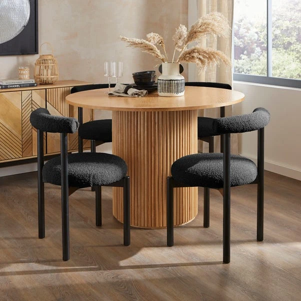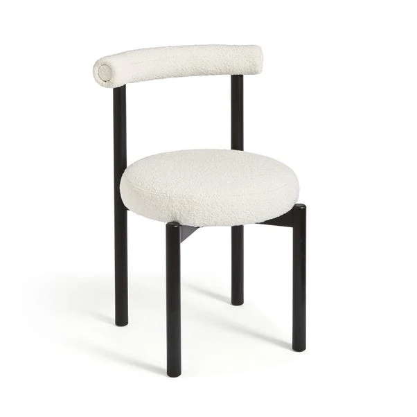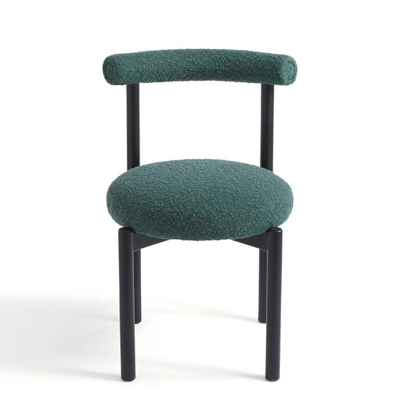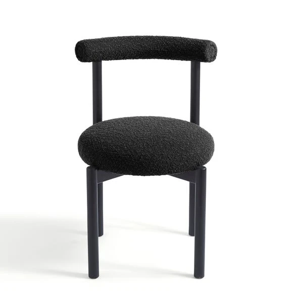 Featuring distinctive boucle fabric upholstery, this chair effortlessly adds elegance to your dining space while offering a soft, luxurious feel. Crafted with a solid and durable metal frame, it ensures long-lasting stability and reliability. The ergonomic high-back design provides exceptional support, making it an ideal choice for extended meals or gatherings, where comfort meets style for an elevated dining experience.